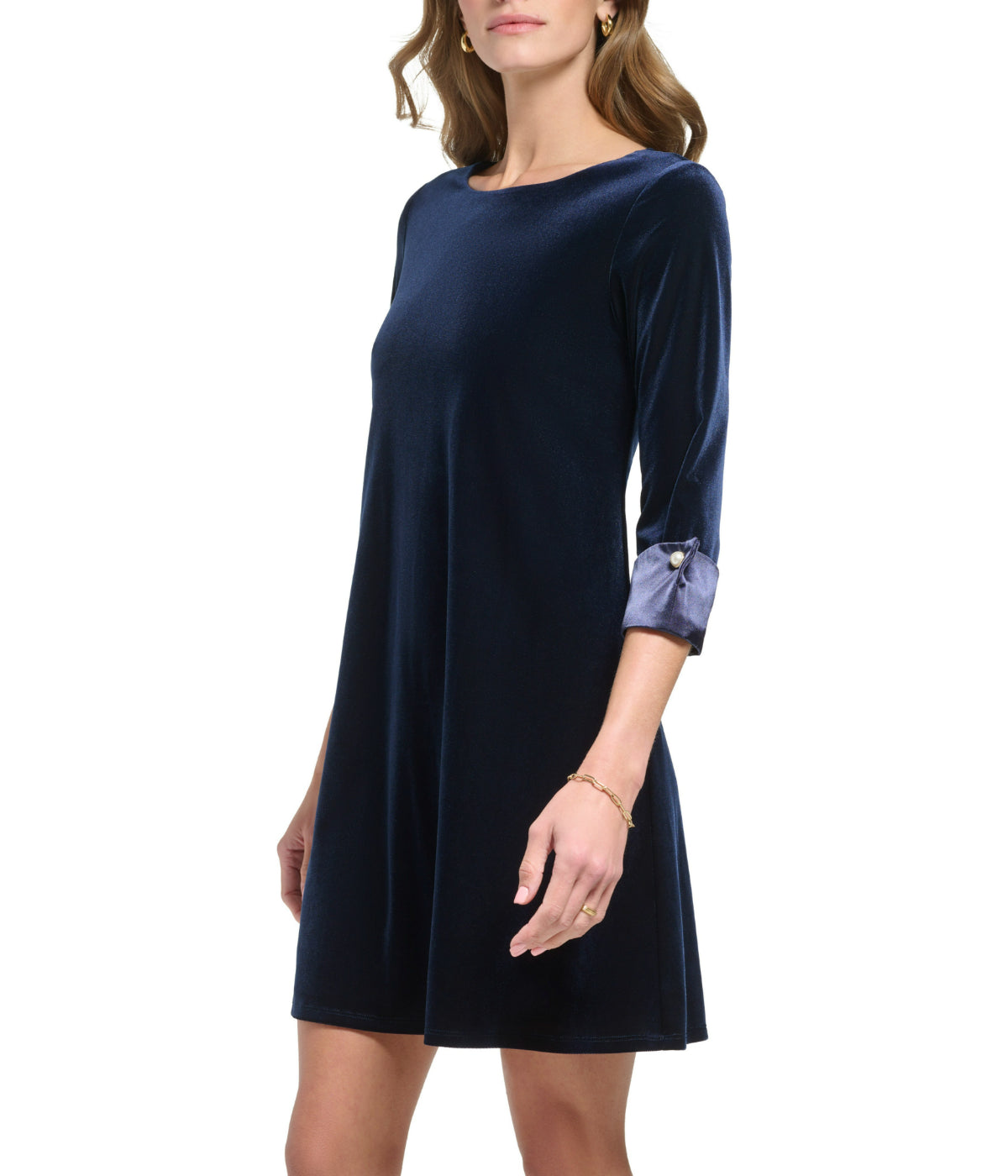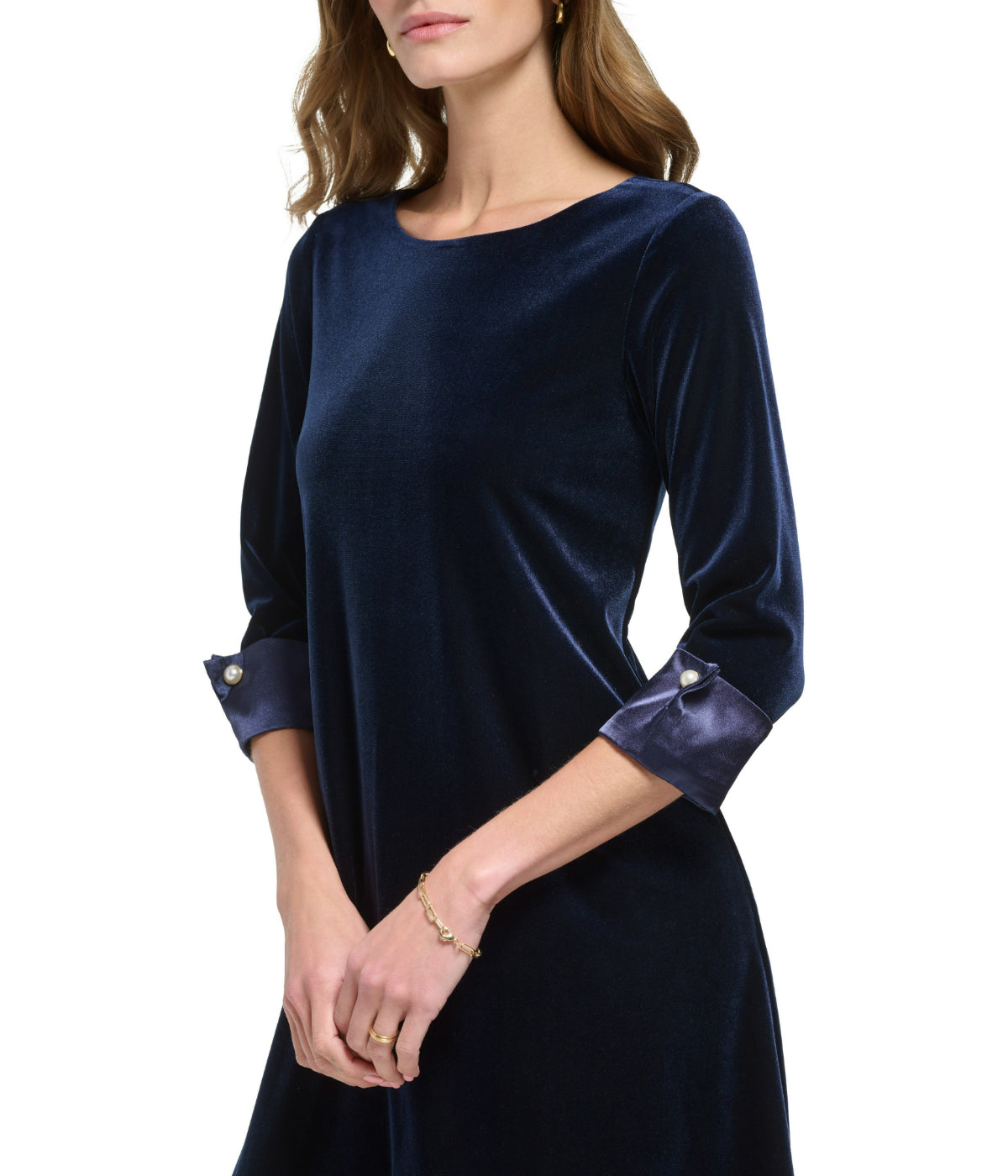 1 Pc 3/4 Cuff Sleeve Trap Velvet/Satin Dress Navy