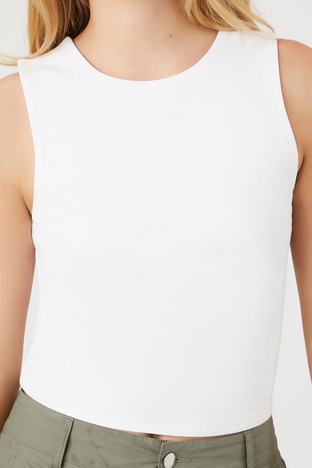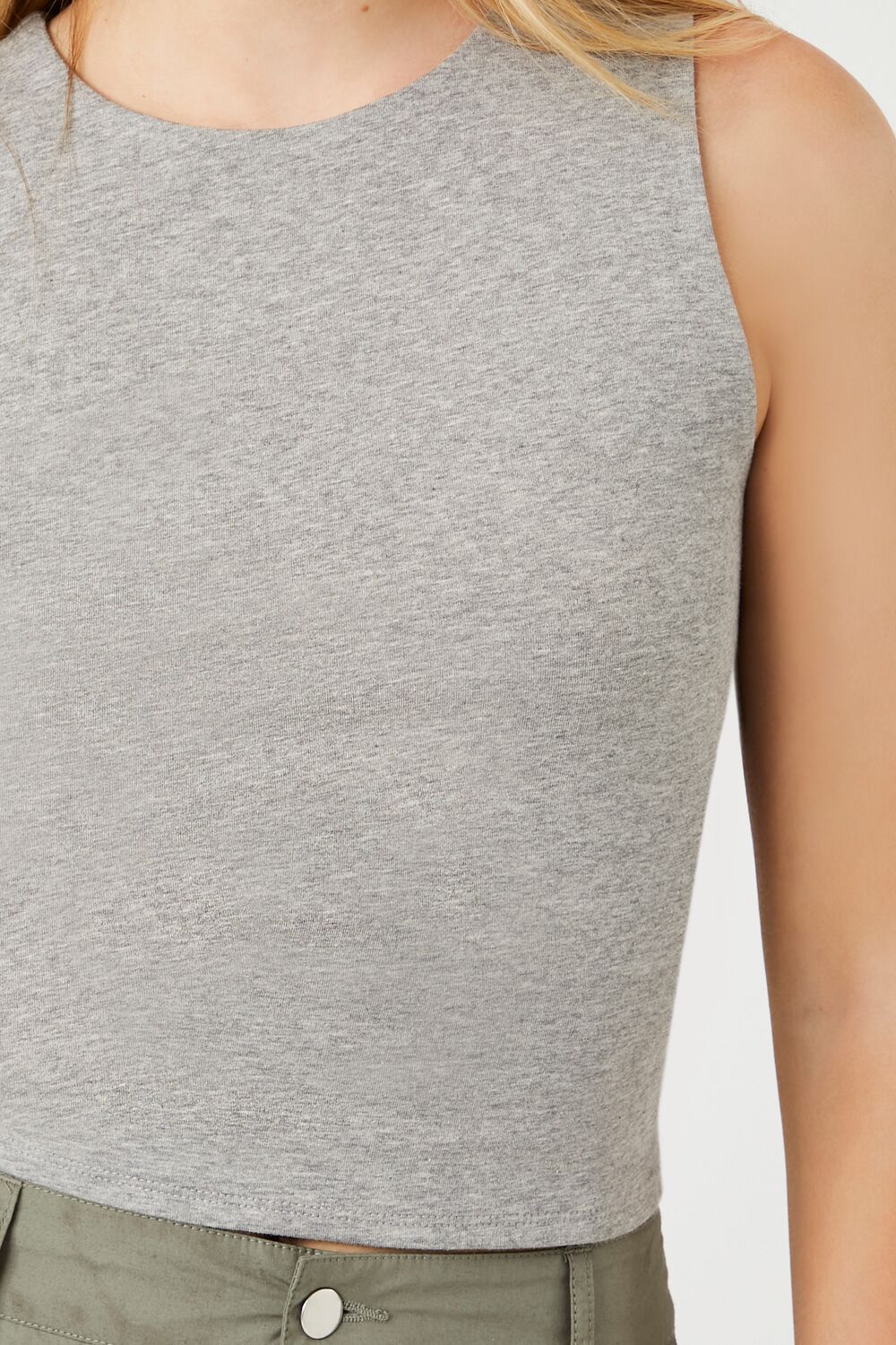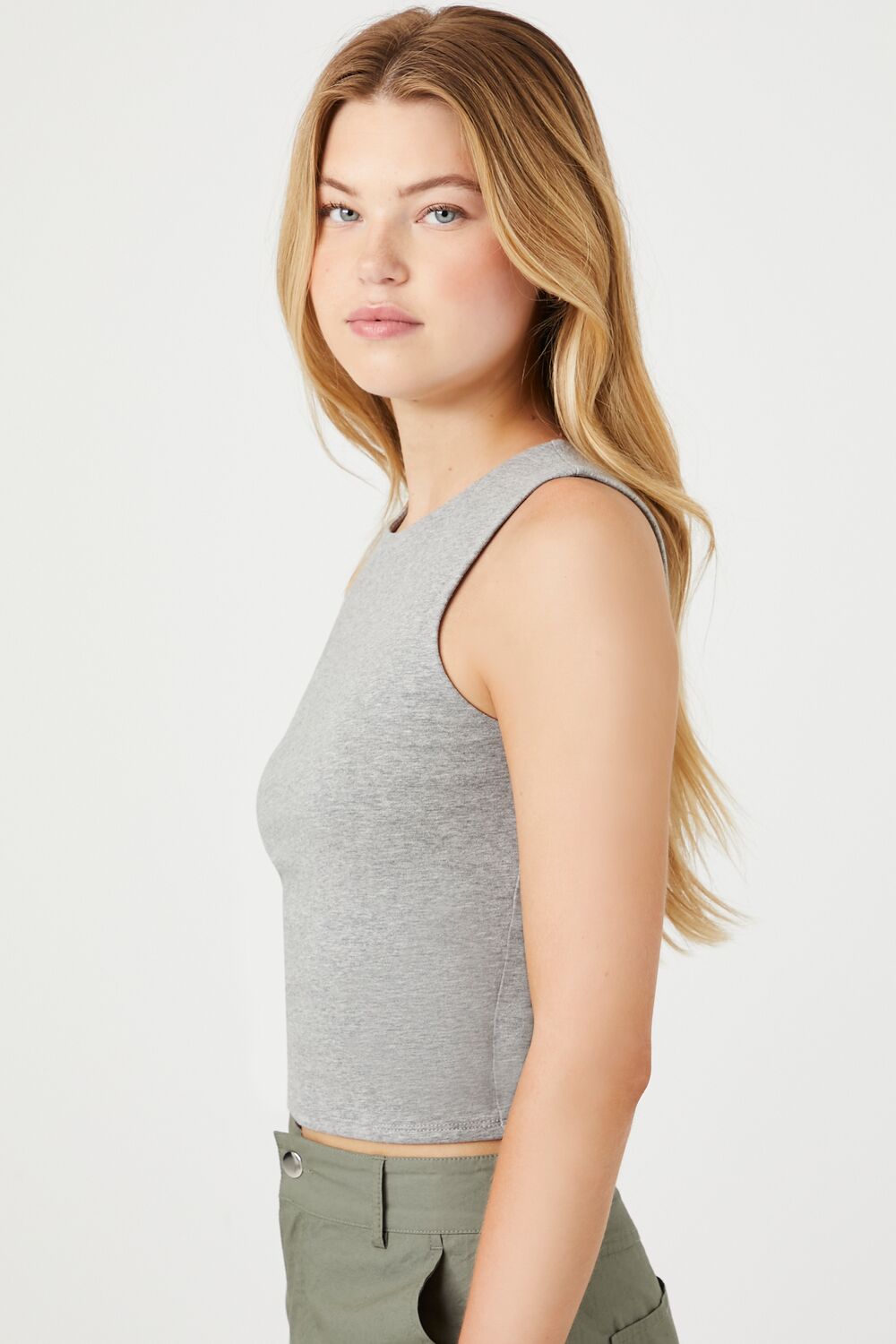 A knit tank top featuring a round neckline. sleeveless cut. and semi-cropped hem.