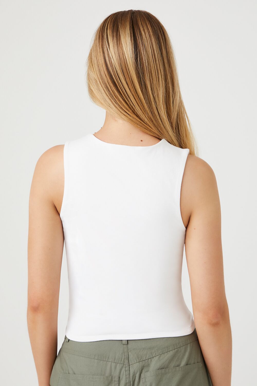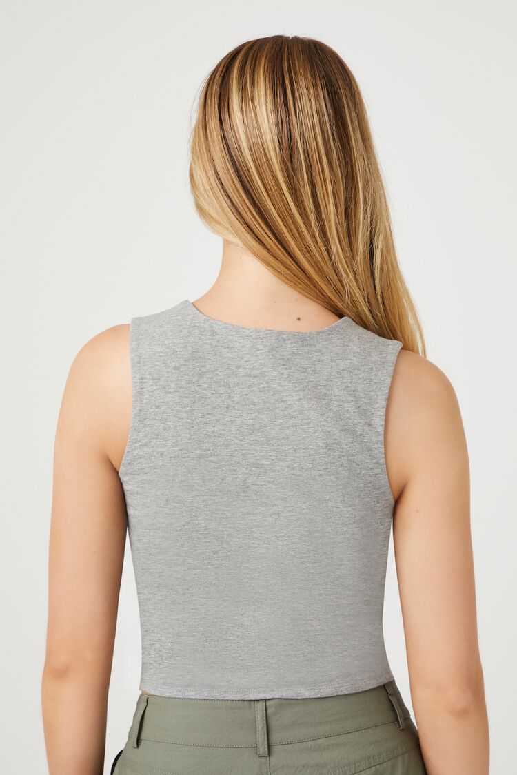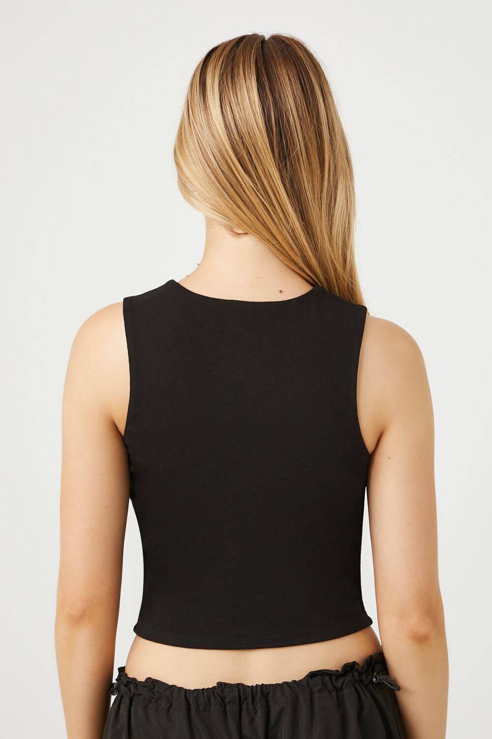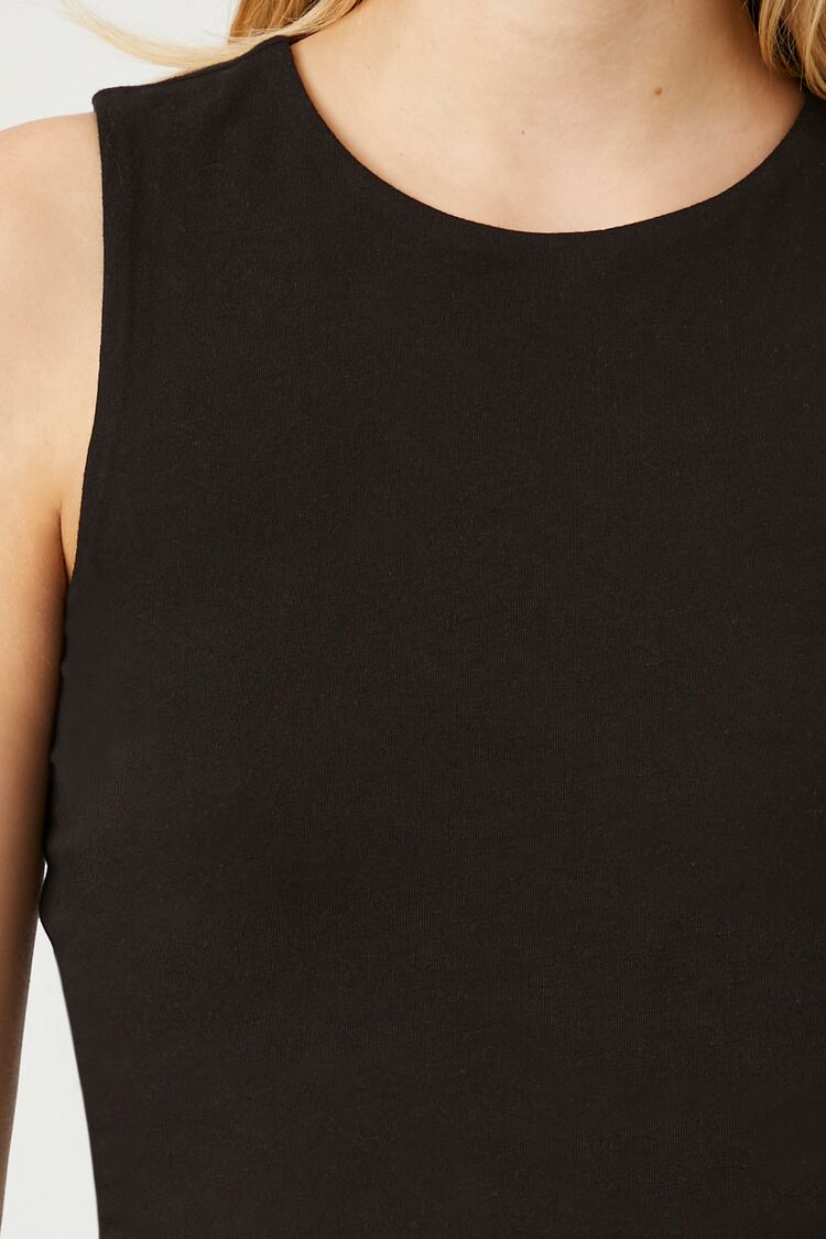 A knit tank top featuring a round neckline. sleeveless cut. and semi-cropped hem.