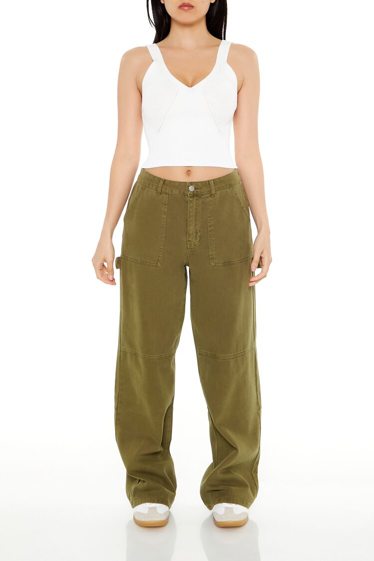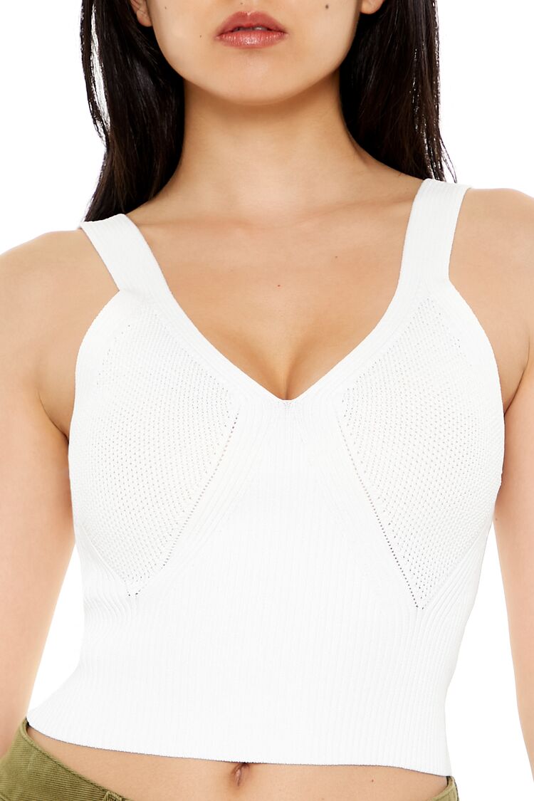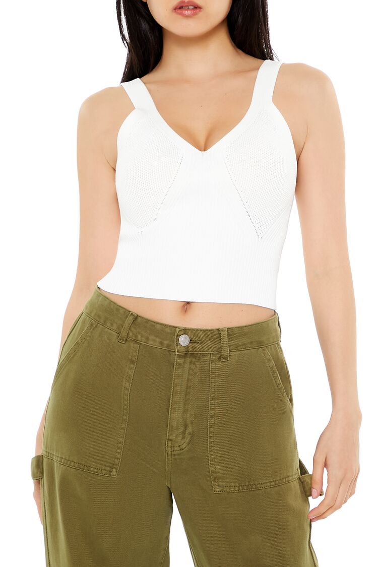 A sweater-knit tank top featuring shoulder straps. a V-neckline. square-cut back. and cropped hem.