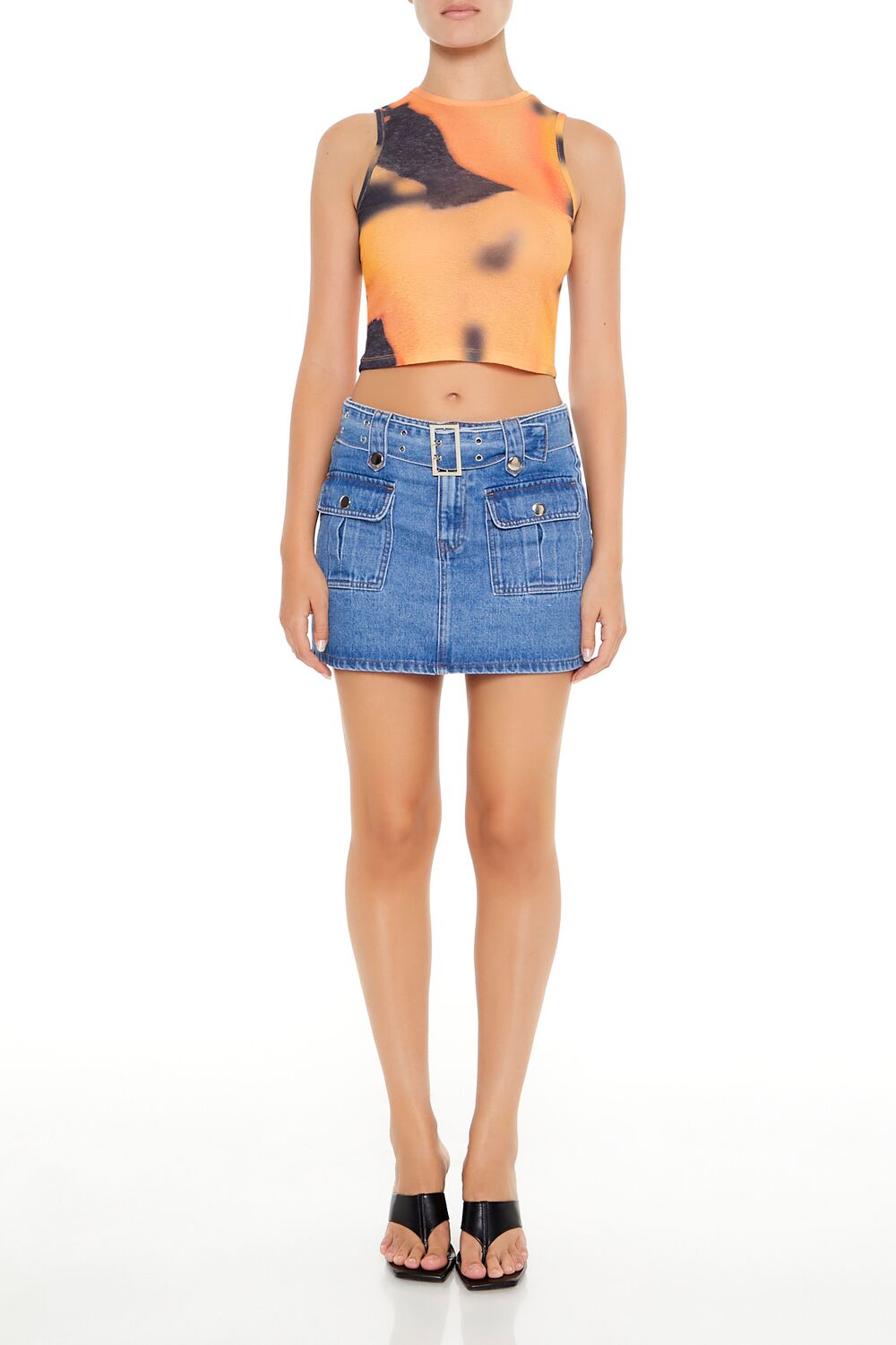 A slub knit tank top featuring an allover tie-dye wash. round neckline and back. and cropped hem.