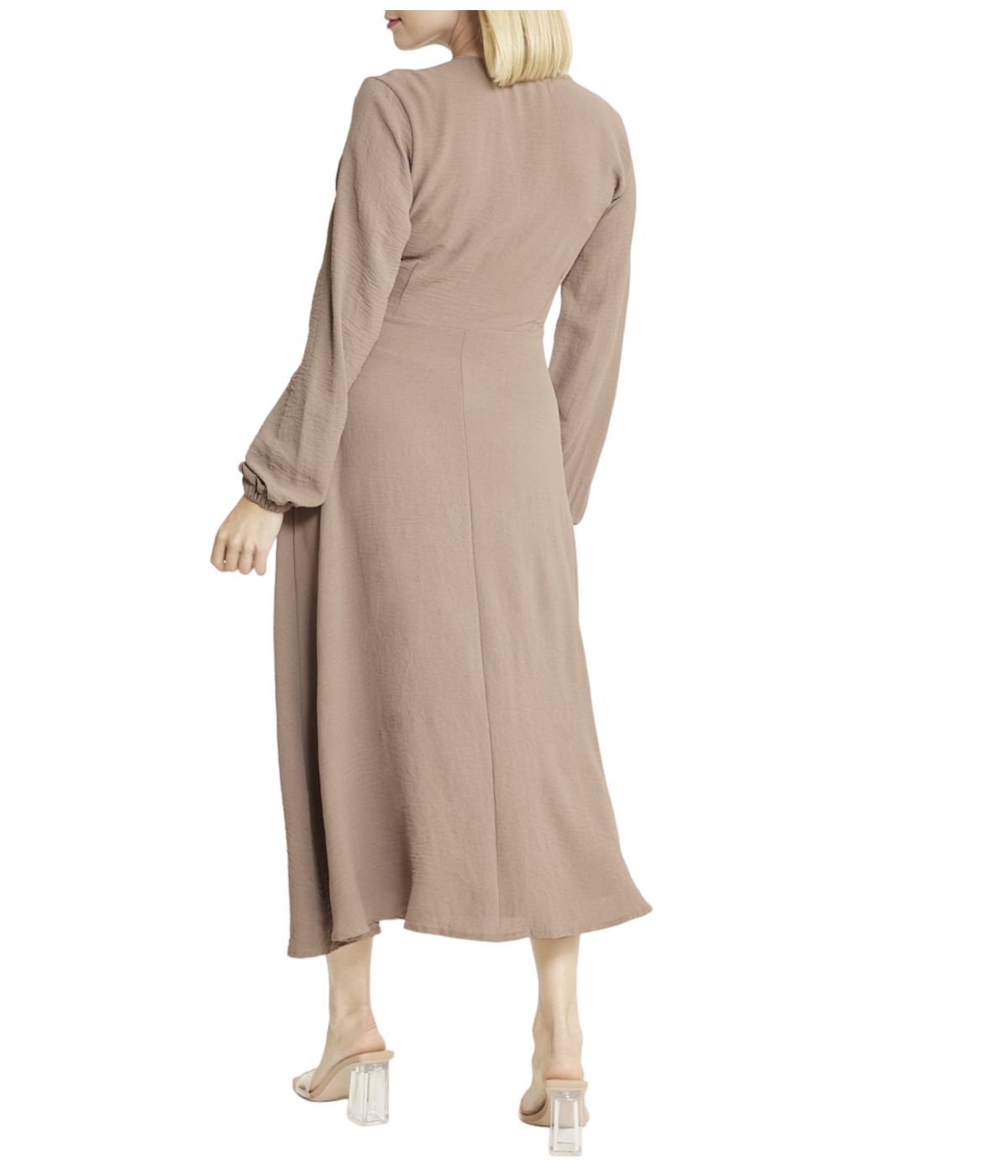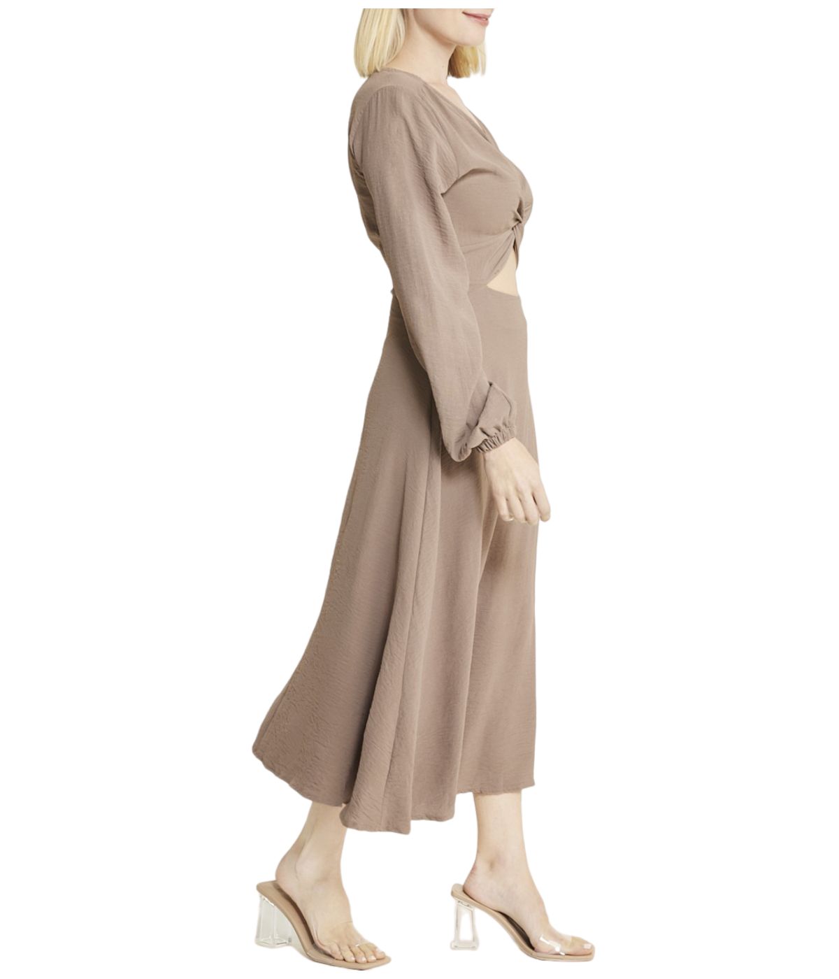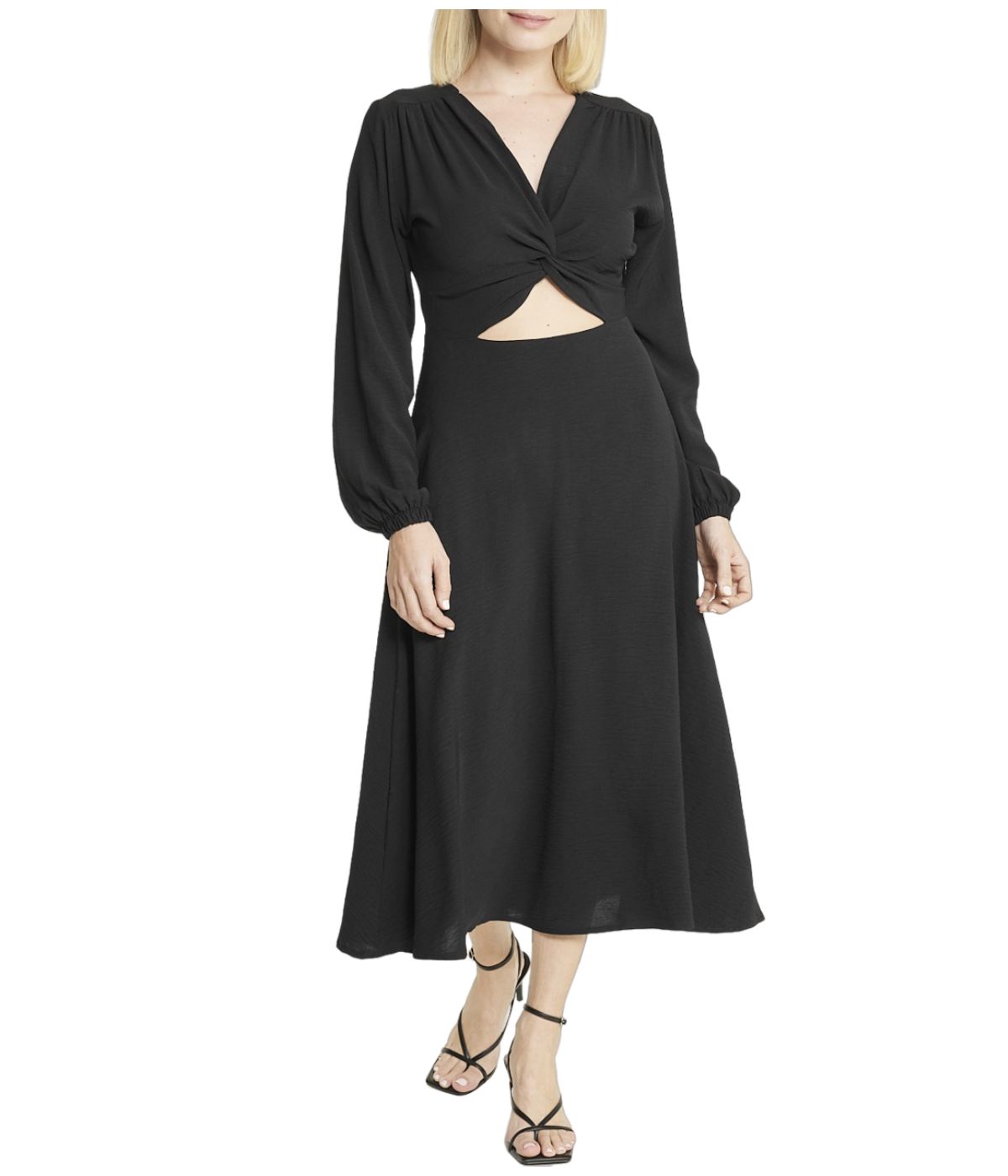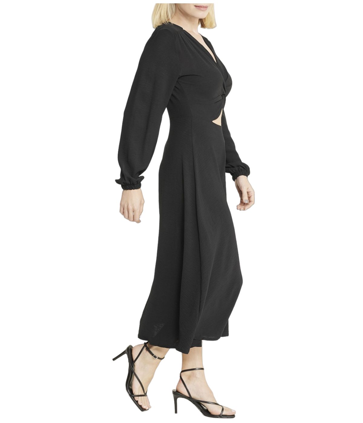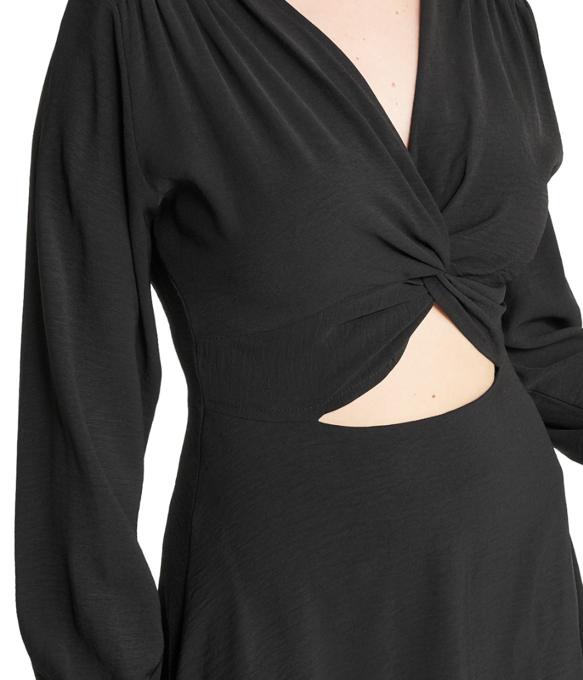 This dress features a cut-out design and romantic puff sleeves. This garment runs small. please size up.