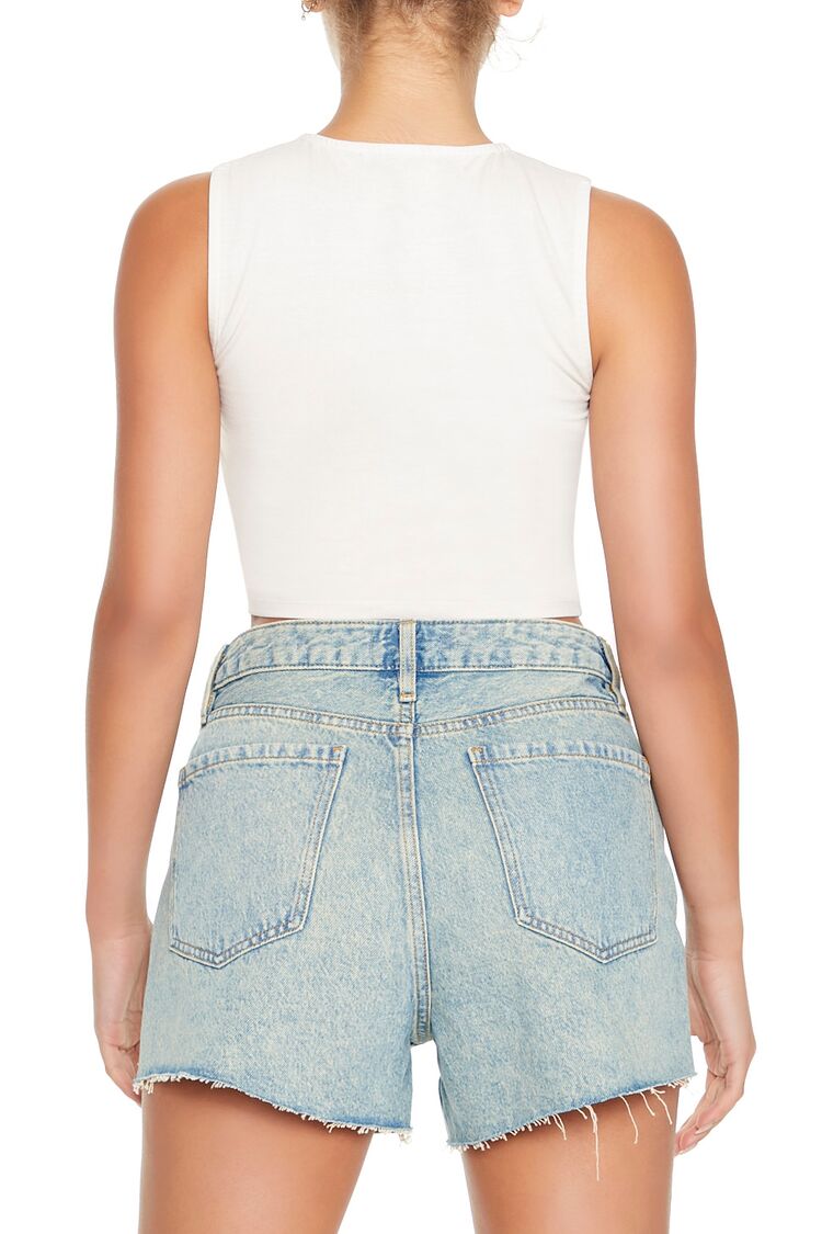 A jersey knit crop top featuring a drawstring cutout. high neckline. and sleeveless cut.
