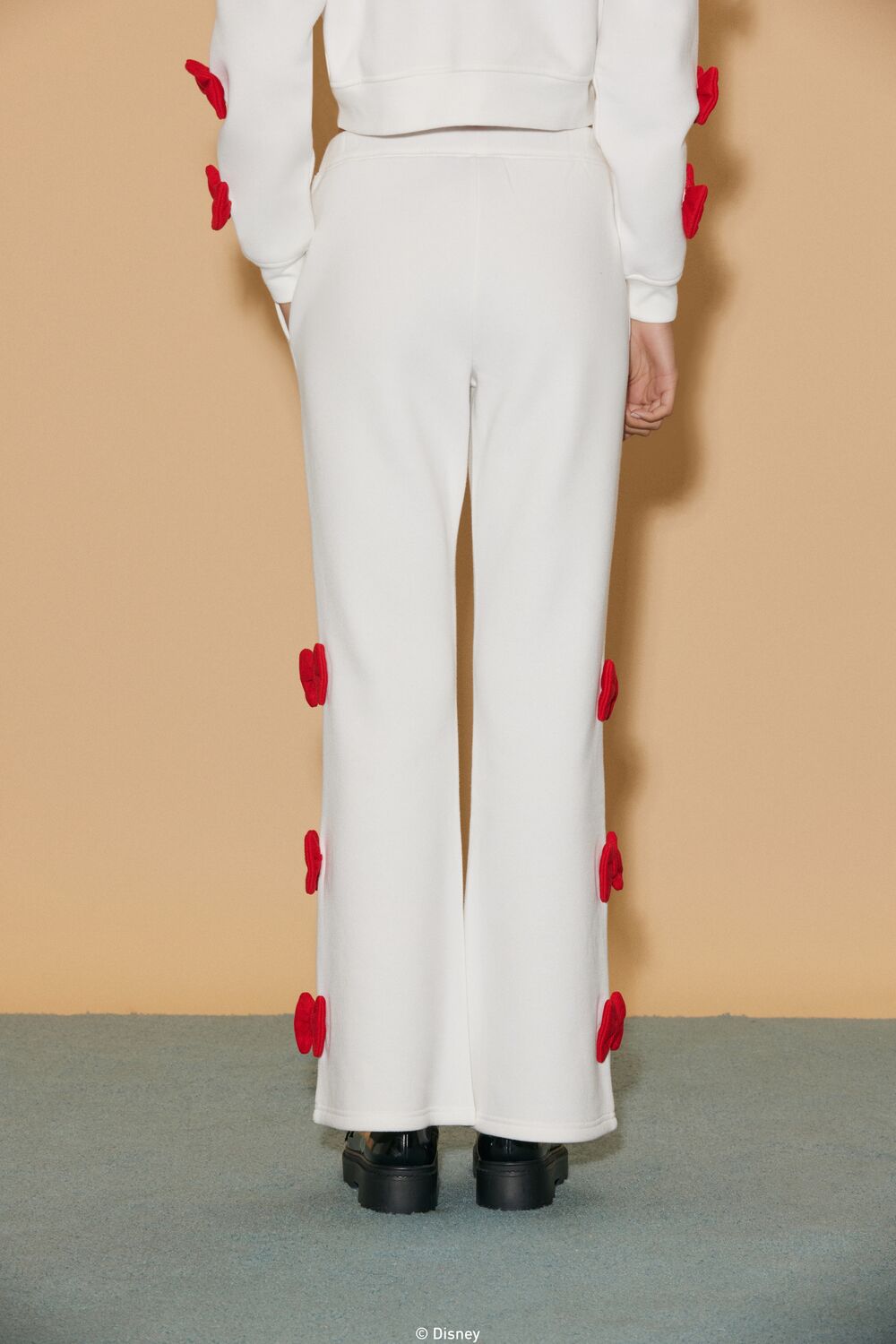 From our Disney x Forever 21 collection. this pair of fleece sweatpants features a flare leg. stretchy waistband. front ‘Miss Minnie’ text and accompanying Minnie Mouse embroidery. on-seam pockets. and side bow embellishments. (Matching top available. Complete the look with 01324531.)