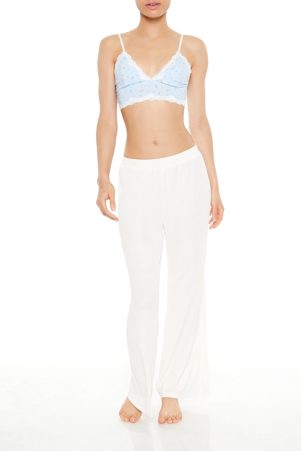 A pair of slinky knit pajama pants featuring a stretchy waistband and flare leg.