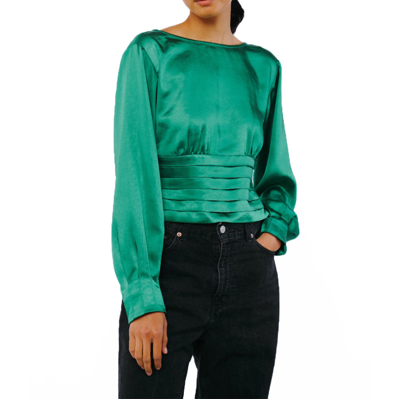The CIEBON Fosi Pleated Waistband Satin Top is a chic and feminine choice for your wardrobe. With its pleated waistband. it adds a touch of elegance and sophistication to the top. Made with satin fabric. it offers a smooth and luxurious look. making it perfect for both casual and dressier occasions.