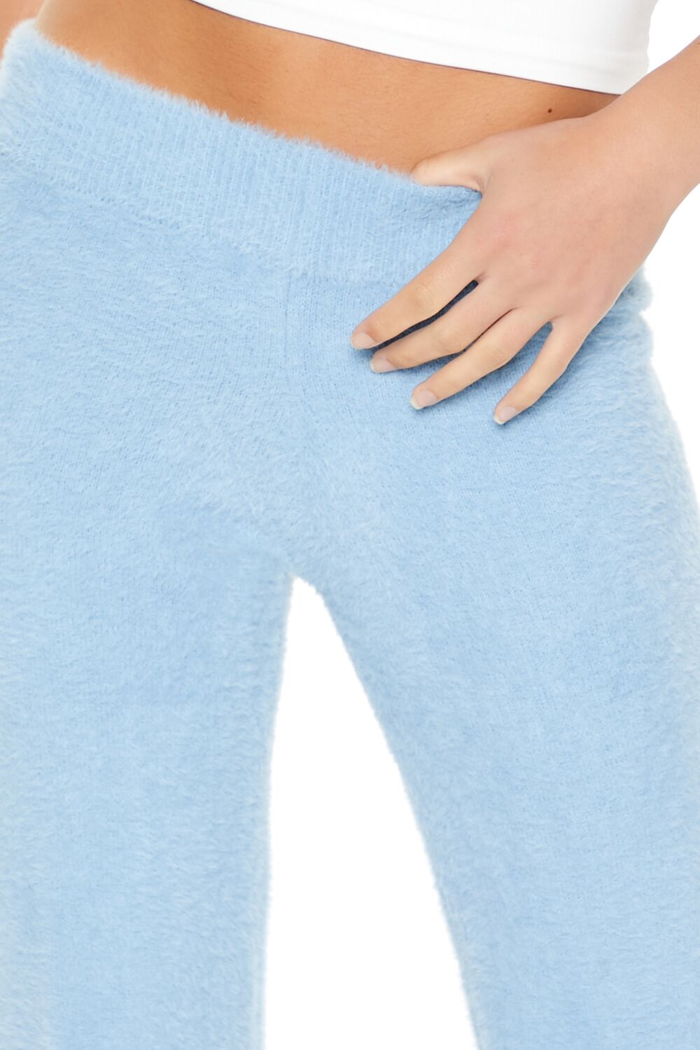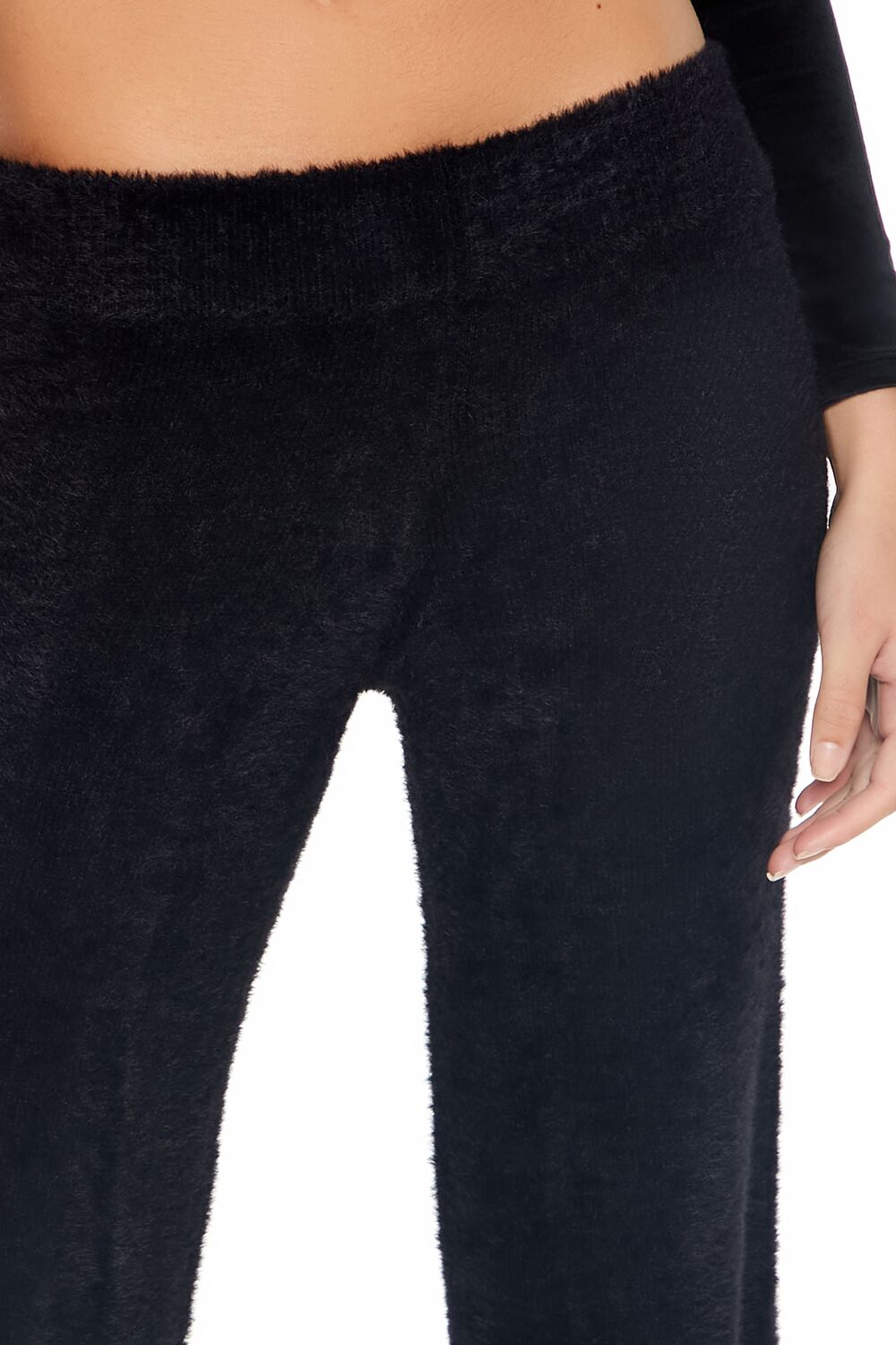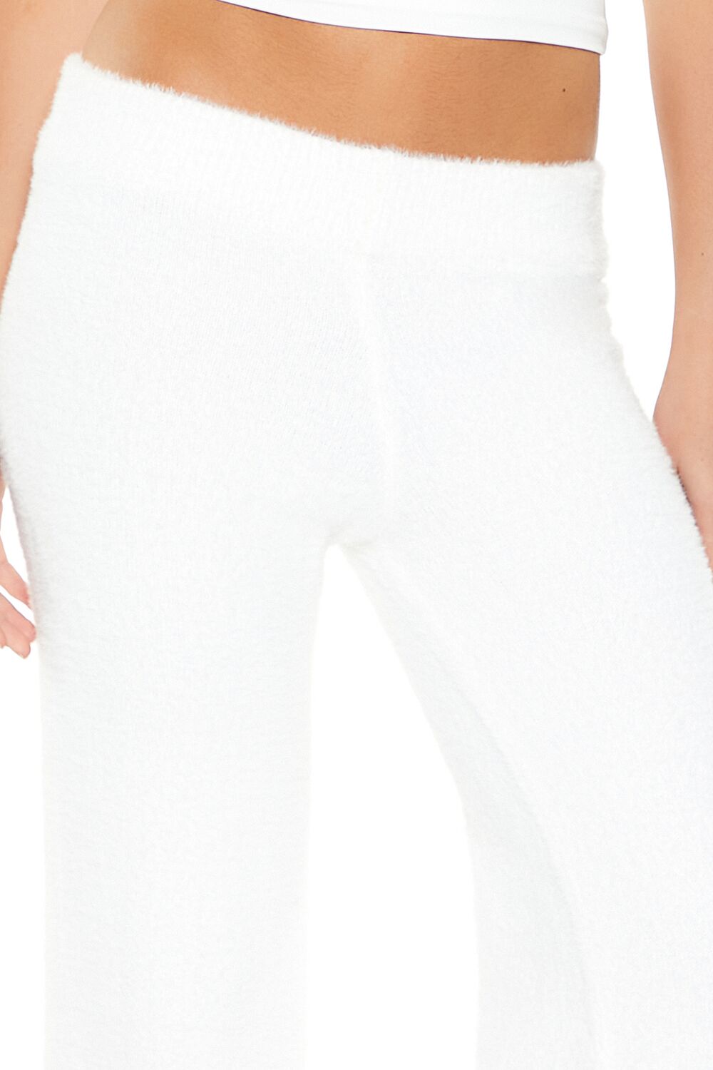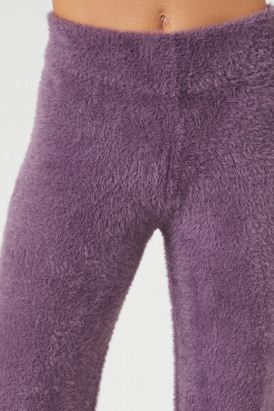 A pair of sweater-knit pants featuring an elasticized waist and flare leg.