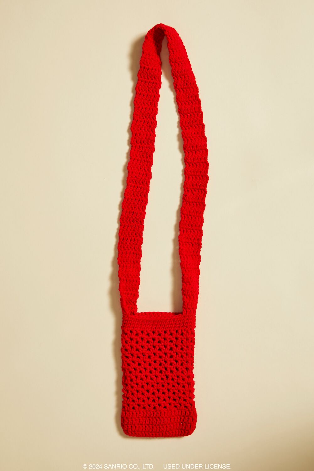 From our Hello Kitty and Friends x Forever 21 collection. this cellphone holder bag features a crochet design. front Hello Kitty patch. and crossbody design.
