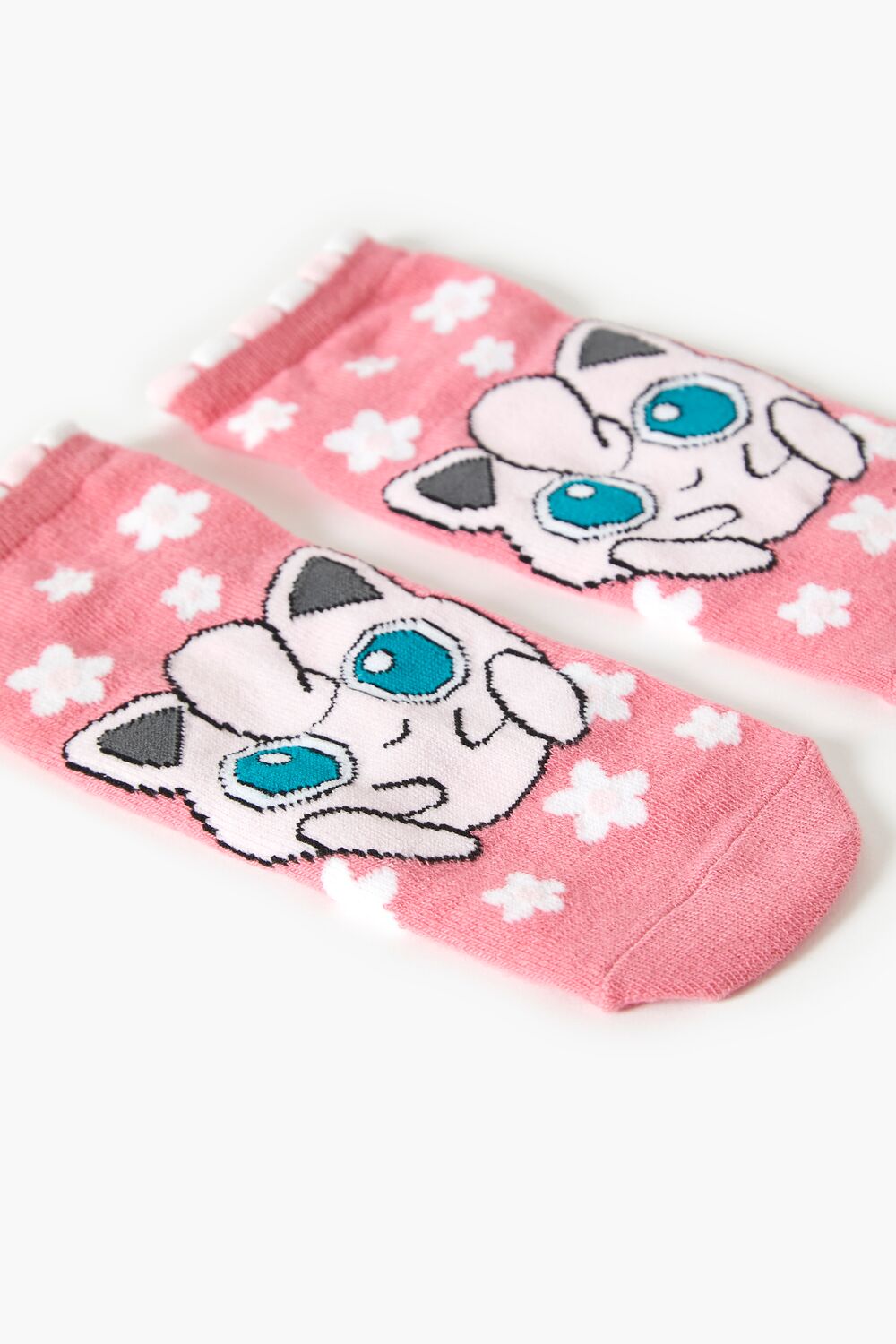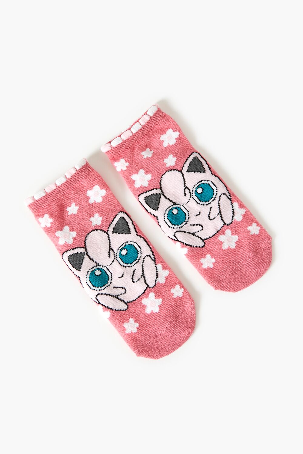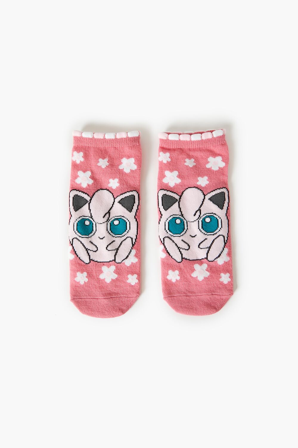 A set of knit ankle socks featuring an allover floral print. Jigglypuff graphics. and scalloped trim.