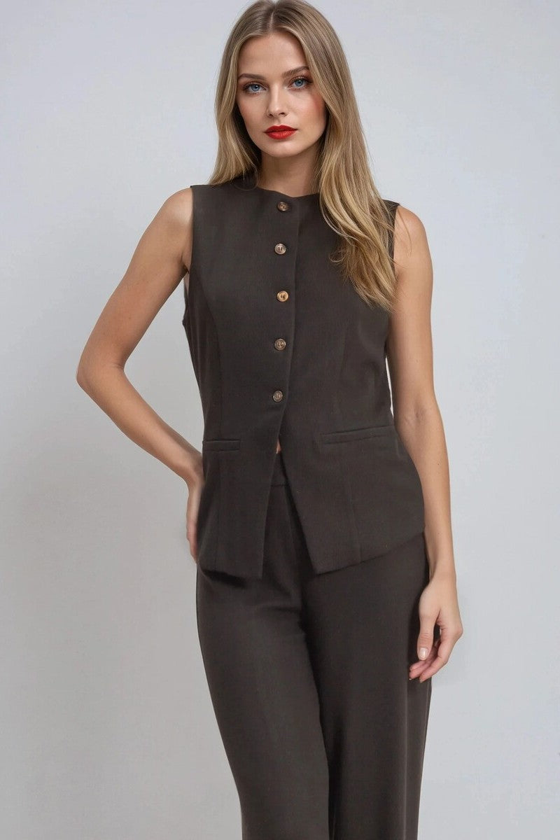 Two-piece knit set featuring a sleeveless vest and matching pants for a coordinated look