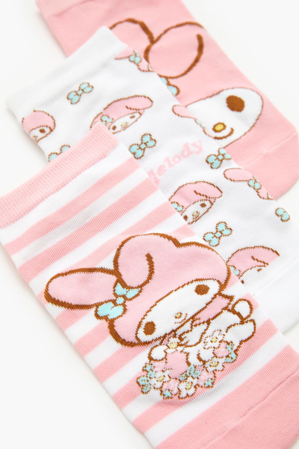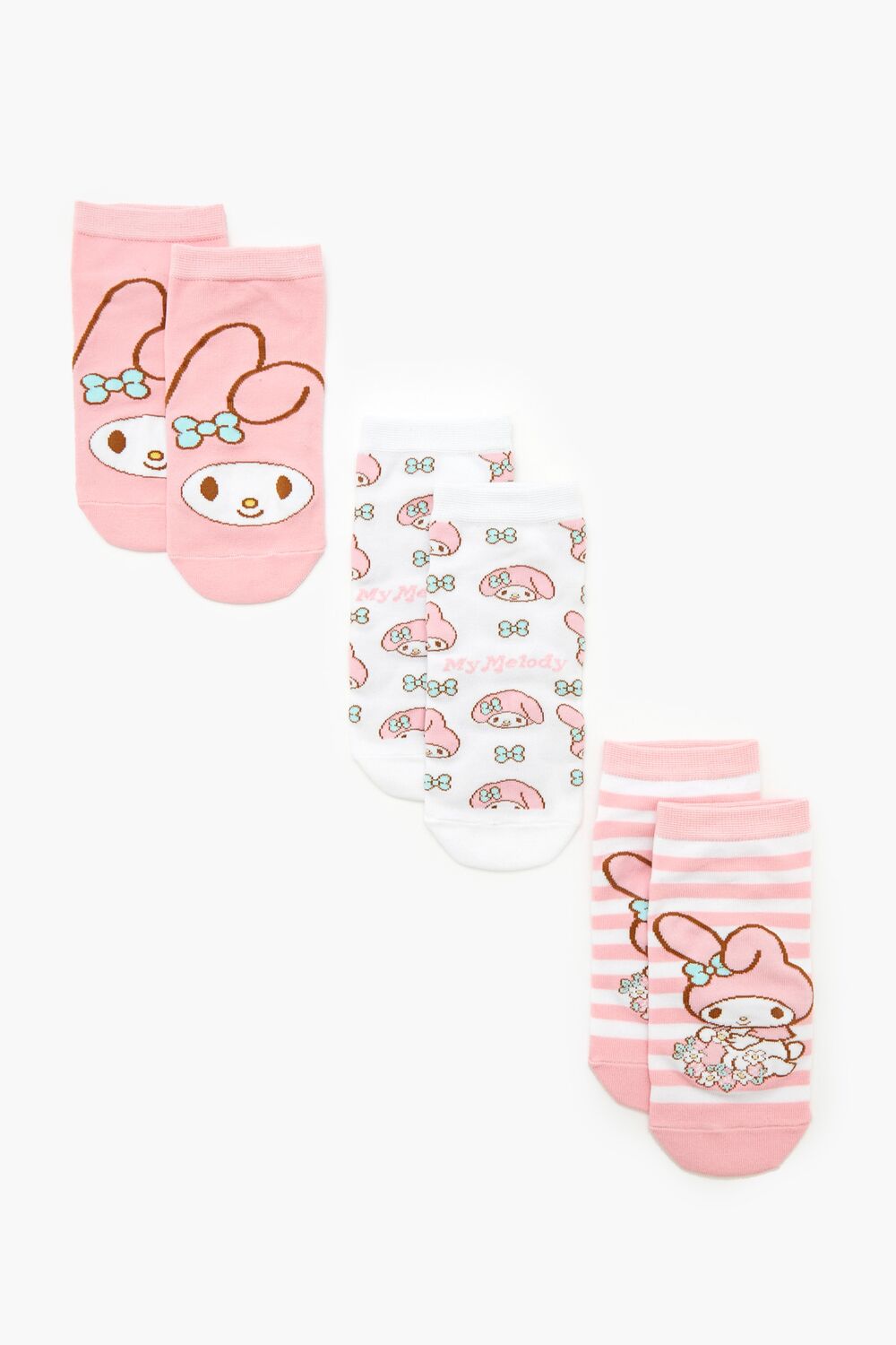 A set of knit ankle socks featuring various My Melody designs.