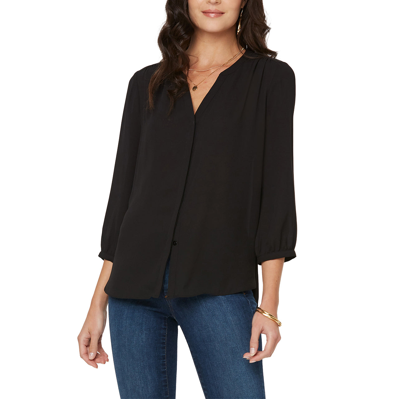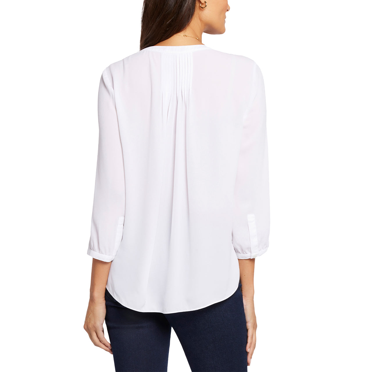 NYDJ’s Pintuck Blouse boasts a billowy three-quarter-sleeved silhouette that’s perfect when paired with any of our slimming denim styles. Pleating at the back yoke creates a sophisticated yet easy drape. Split round neckline with covered full front placket and button closures.