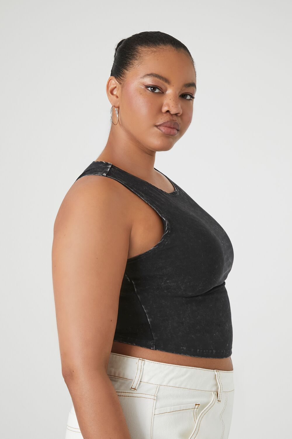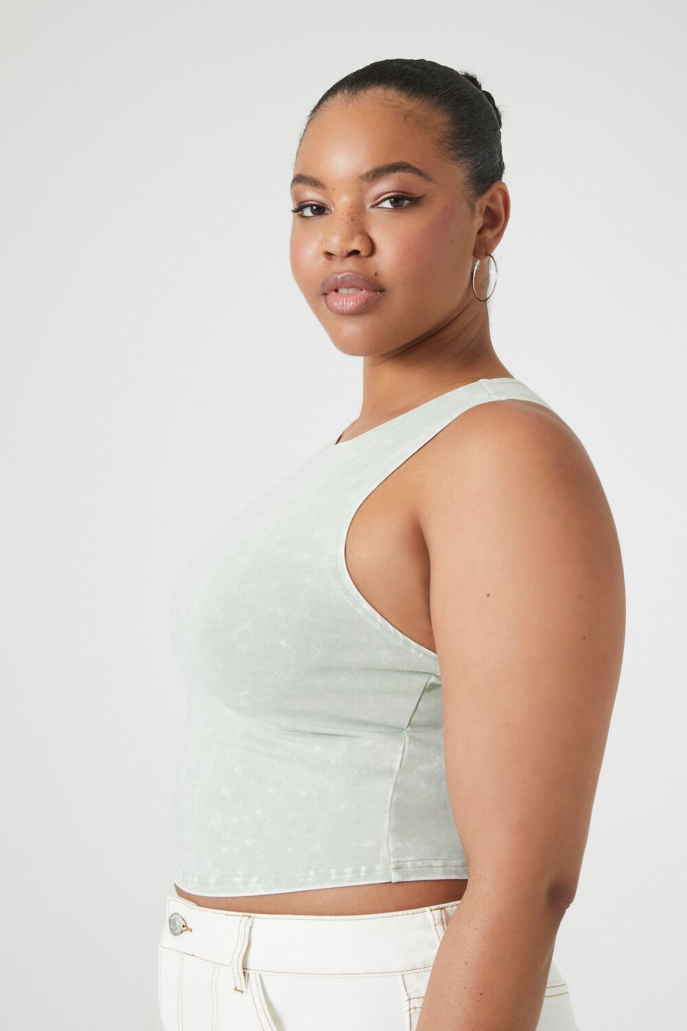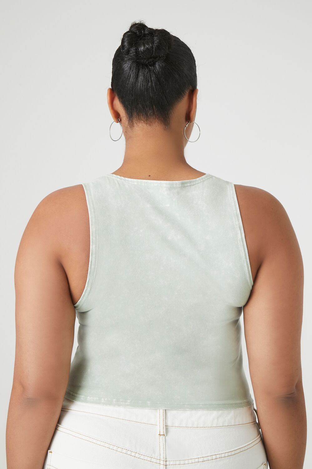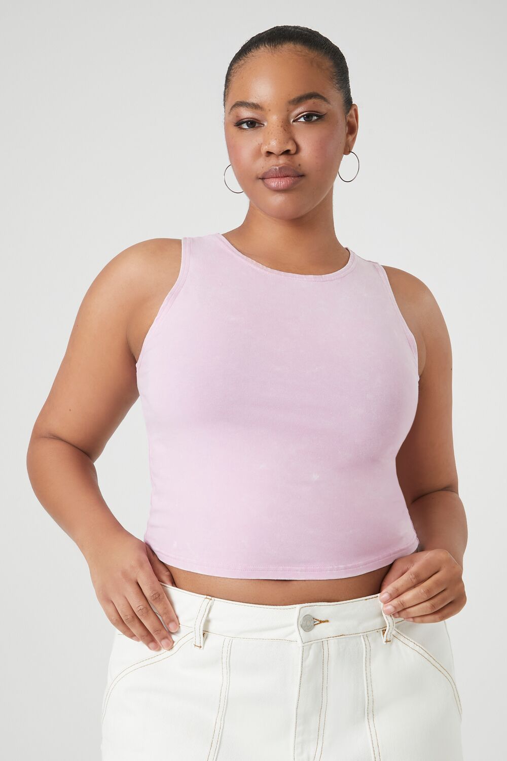 Forever 21+ – A knit tank top featuring an allover mineral wash. round neckline. and a cropped hem.