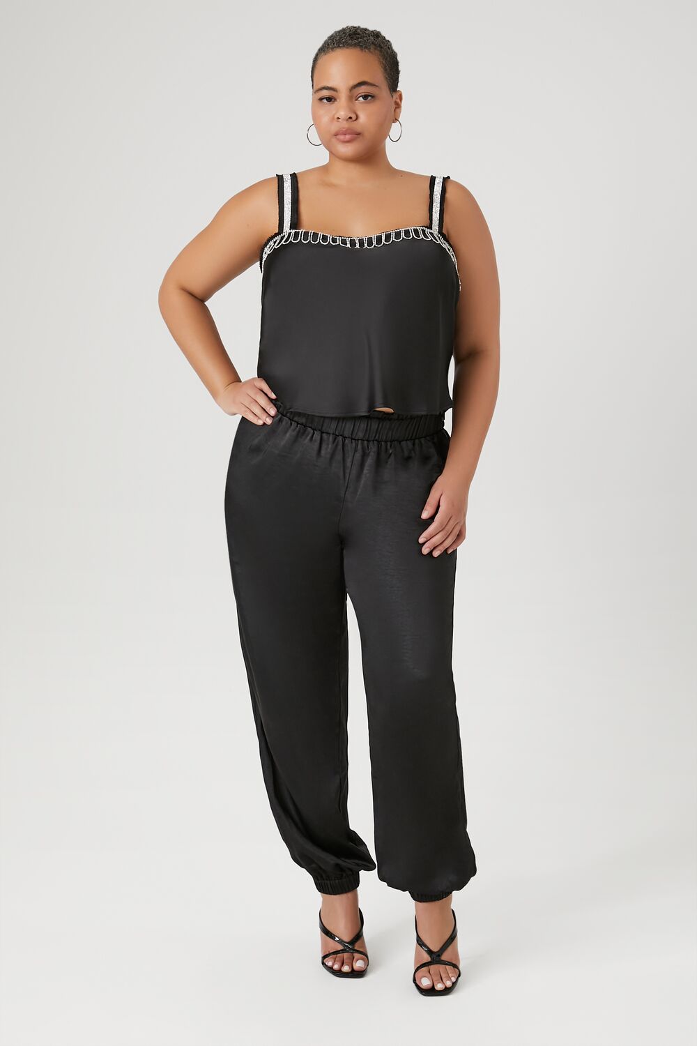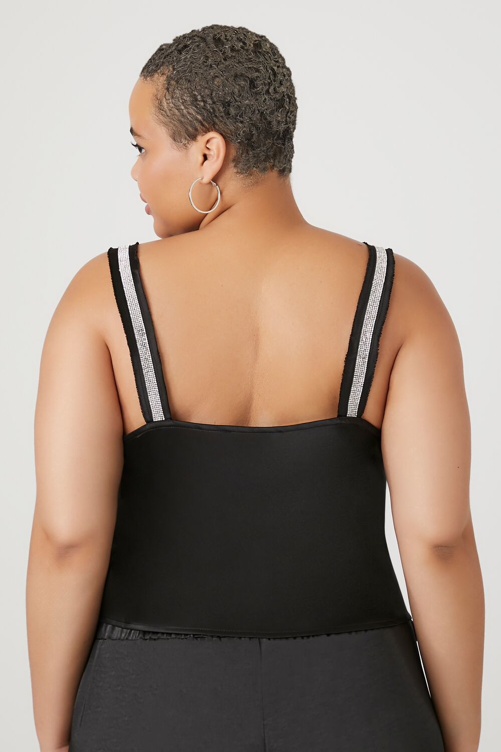 Forever 21+ – A satin cami featuring rhinestone trim and a square-cut neckline and back.