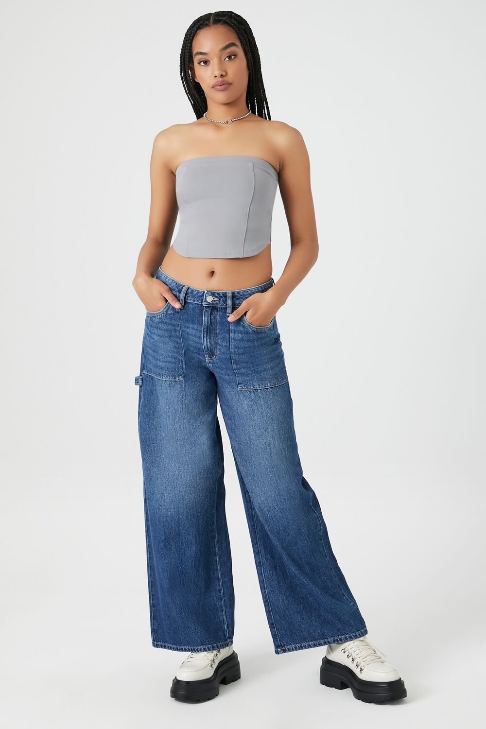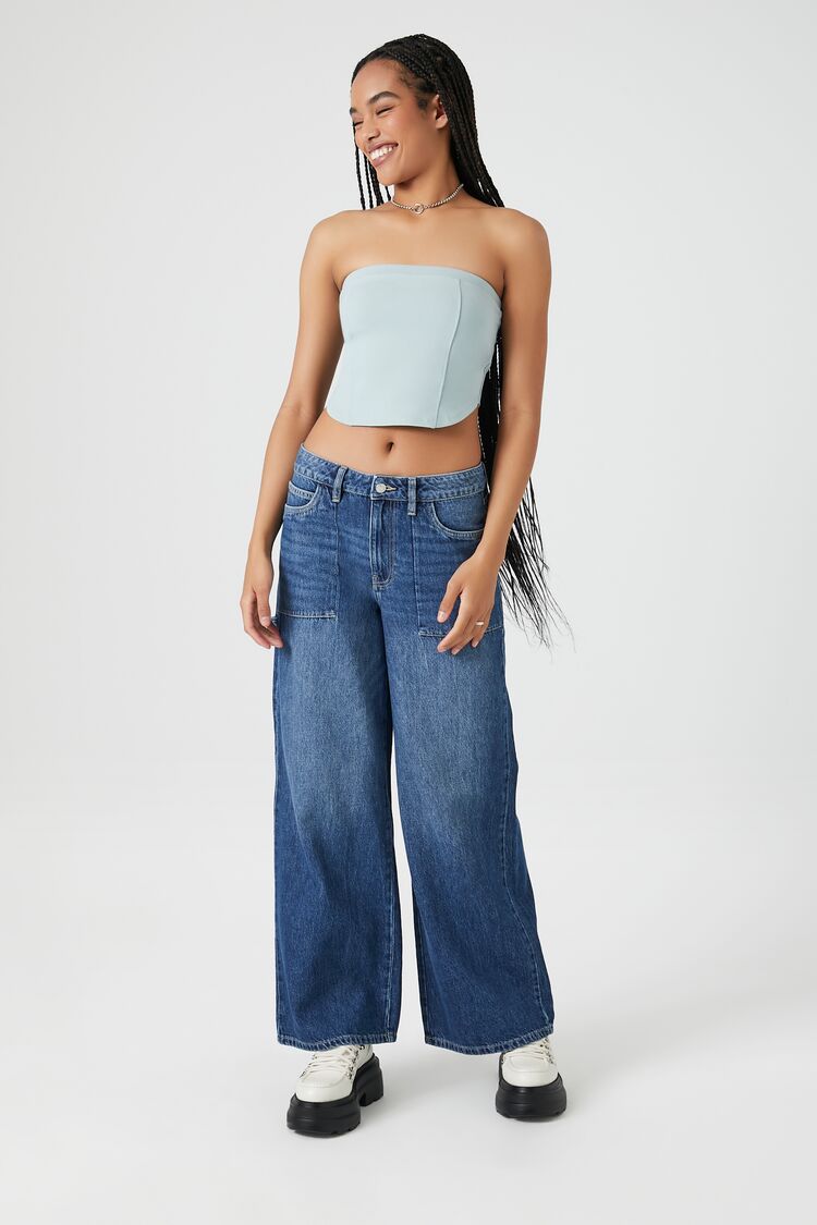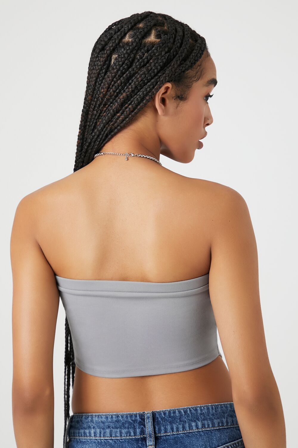 A Ponte knit tube top featuring a straight-cut neckline and back. seamed construction. and a curved reverse high-low hem.