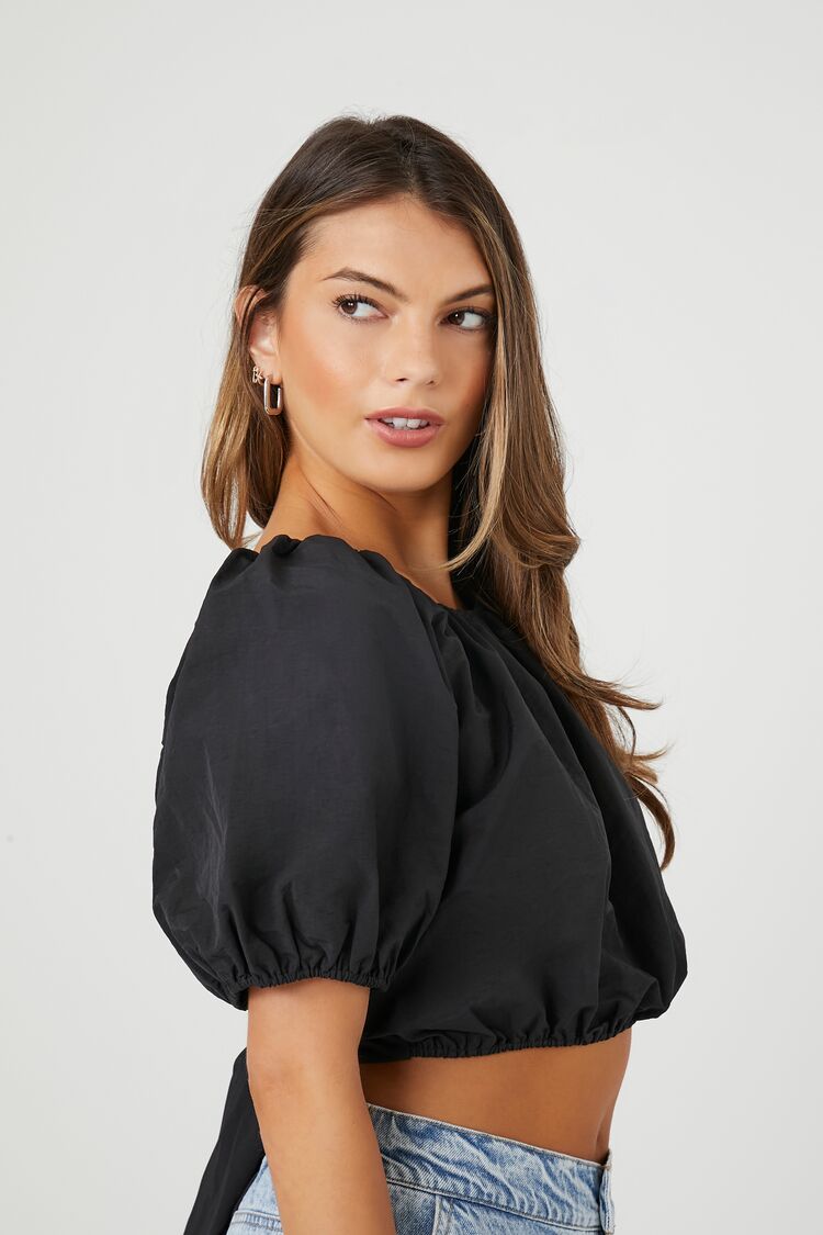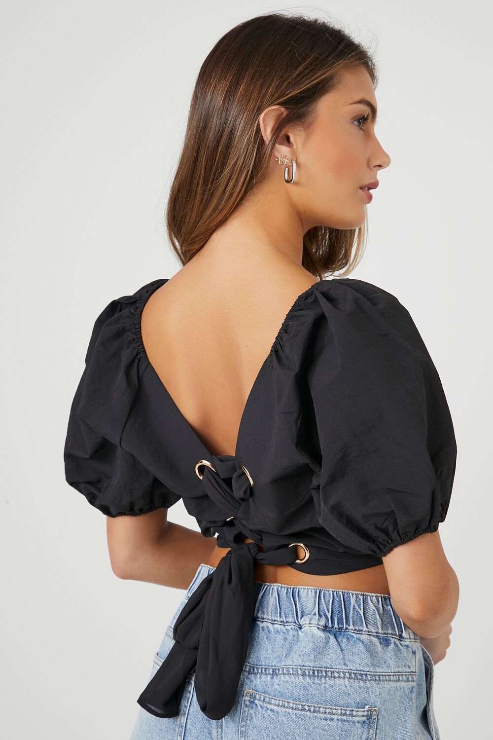 Be the first to review “Puff-Sleeve Lace-Back Crop Top”
