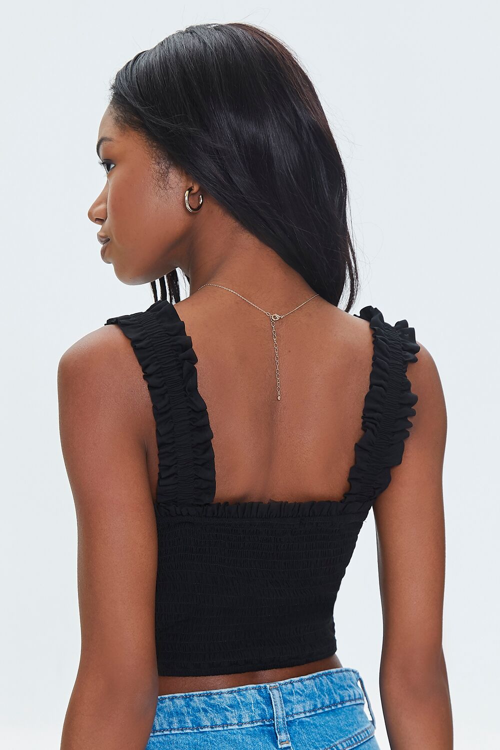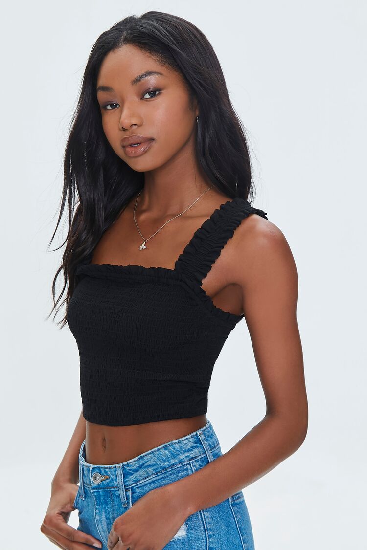 Smocked Ruffled Cropped Tank Top
